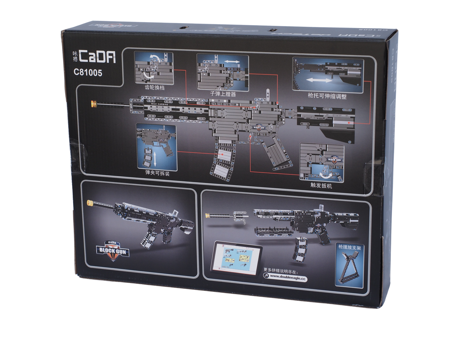 Build a classic M4 out of plastic blocks. This kit has 621 pieces. The "Block Gun" logo on the gun is a sticker and most people will not use it. This is a very different gift for the firearms fan in your life. Includes branded color box. These models are in hand and will ship within two days of your order from the east coast USA.